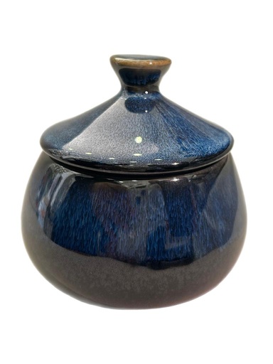 سكرية بورسلان دائري ازرق مع غطاء صغير