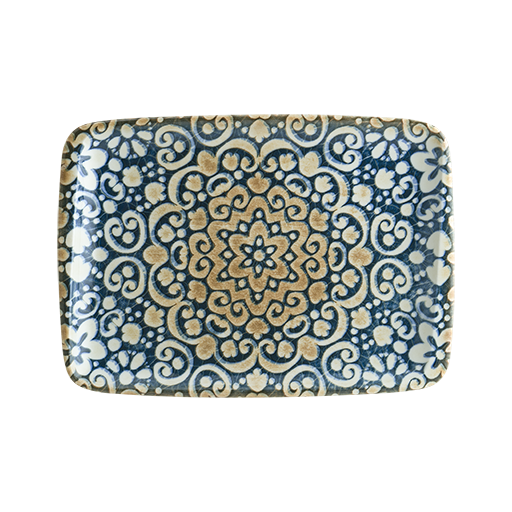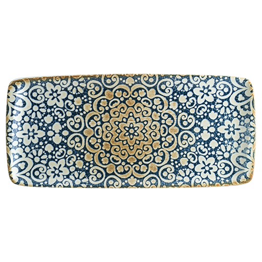ALHGRM 24OKYصحن بورسلان مستطيل مورد ازرق ذهبي