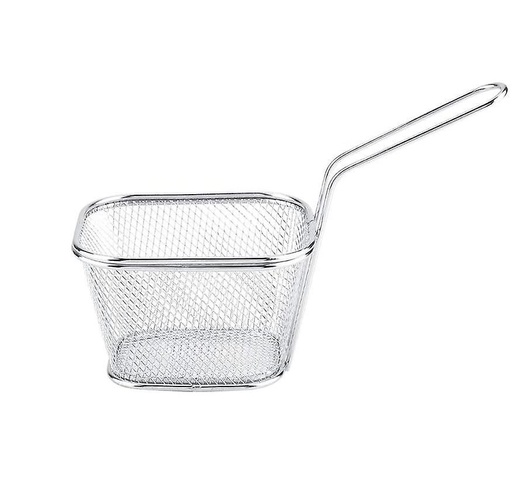 سلة بطاطا ستانلس مربع مع يد شبك ناعم 10.5*9.6 م